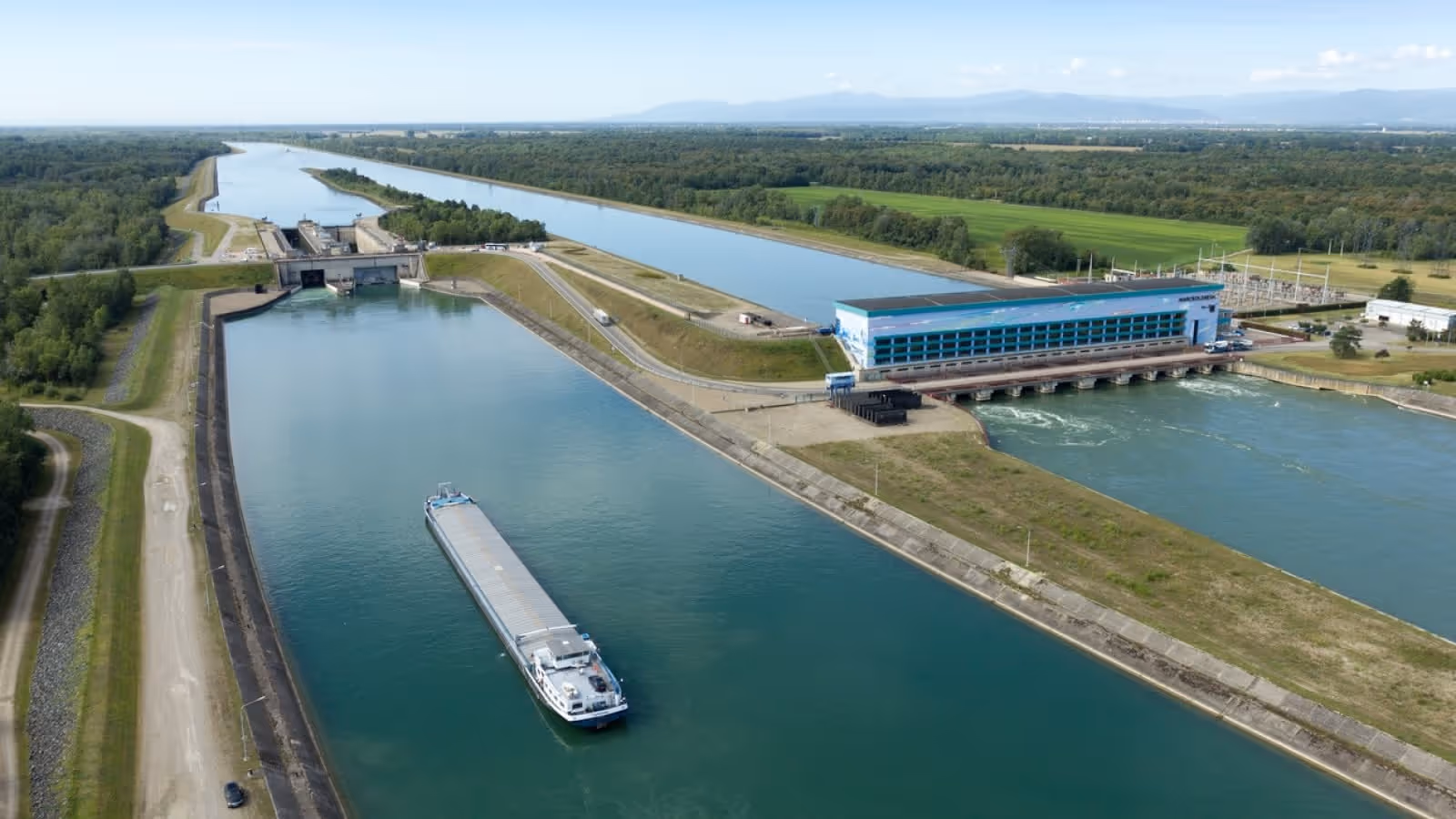 Ecluse et centrale hydroélectrique de Marckolsheim construites en 1960