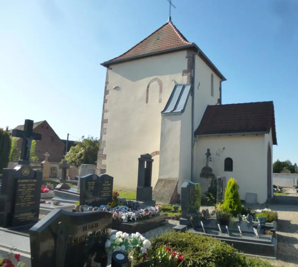 Il remonte au 12ème siècle où une église de style roman fut construite au milieu du cimetière. Cette église primitive, plusieurs fois sinistrée par les guerres mais aussi les crues du Rhin, fut déconstruite à l’issue de l’achèvement de la nouvelle, erigée au cœur du village en 1864. De la tour qui s’élevait à 40 m, on ne garda que la partie basse qui abrite le chœur de ce sanctuaire dédié à la Vierge Marie.